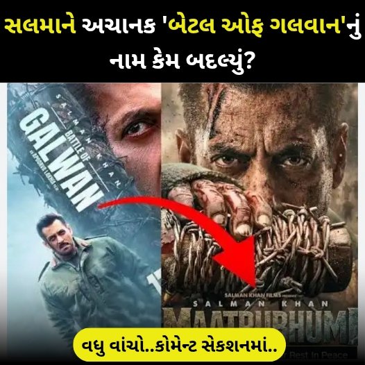 શરૂઆતમાં, એવું લાગતું હતું કે તેણે આ જ નામ સાથે રિલીઝ થયેલા ગીત અંગે એક નવું અપડેટ પોસ્ટ કર્યું છે. પરંતુ પછી ખબર પડી કે ફિલ્મનું શીર્ષક બદલાઈ ગયું છે. નવા પોસ્ટરમાં સલમાન ફરીથી એક તીવ્ર લુકમાં જોવા મળે છે. પરંતુ પ્રશ્ન એ છે કે નિર્માતાઓએ ફિલ્મનું નામ કેમ બદલ્યું? પોસ્ટરમાં “મે વોર રેસ્ટ ઇન પીસ” ટેગલાઇન વાર્તામાં કેટલાક ફેરફારો સૂચવે છે. શક્ય છે કે નિર્માતાઓએ ચીન સાથેના અથડામણ કરતાં ભાઈચારાના તત્વને પ્રાથમિકતા આપી હોય.