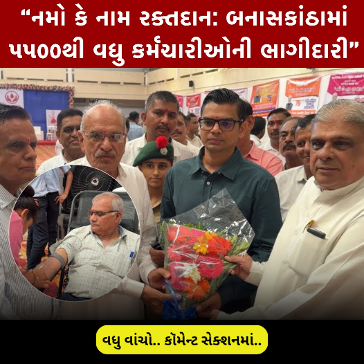 એને પણ આપણે સૌએ સાથે મળી અને આવનારા સમયમાં આપણા રાષ્ટ્રને મજબૂત કરવા માટે આપણે સૌ સાથે મળીને કામ કરીએ આજે ફરીથી બધા લોકો અને એની અંદર જે જે લોકો દાતાઓ છે ને જેમણે સમયનું પણ દાન કર્યું રક્તદાન કર્યું એવા તમામ રક્તદાતાઓને હું ખૂબ ખૂબ અભિનંદન આજ રોજ બનાસકાંઠા જિલ્લા સંયુક્ત કર્મચારી મોર્ચા દ્વારા ખૂબ સુંદર નમો કે નામ રક્તદાન કેમ્પેનનું આયોજન કરવામાં આવ્યુંછે. સમગ્ર જિલ્લામાં સાત જેટલા સ્થળોએ સવારે આઠ વાગ્યાથી આ કેમ્પ યોજાવાનો છે. જેમાં જિલ્લા વહીવટી તંત્રના તમામ કર્મચારીઓ તમામ શિક્ષક મિત્રો સાથોસાથ ખાનગી અને ગ્રાન્ટીન એડ શાળાના શિક્ષકો પોલીસ વિભાગ મડાણા જે એસઆરપીએફ છે