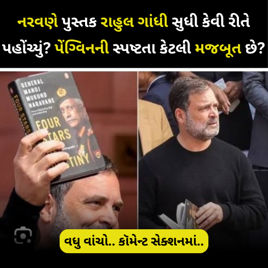 સાચું કોણ બોલે છે? પુસ્તક લખનાર, પ્રકાશક કે તેને લહેરાવનાર?પૂર્વ આર્મી ચીફ જનરલ મનોજ મુકુન્દ નરવણેની અપ્રકાશિત પુસ્તક Four Stars of Destiny ને લઈને વિવાદ સતત વધી રહ્યો છે. પુસ્તક છપાયું હતું કે નહીં? રક્ષા મંત્રાલયથી મંજૂરી મળી હતી કે નહીં? પ્રકાશક પેંગ્વિન રેન્ડમ હાઉસે ભૂલ કરી કે પછી સરકારે છેલ્લી ઘડીએ નિર્ણય બદલી દીધો? આવા અનેક સવાલો વચ્ચે રાજકારણ ગરમાયું છે.10 ફેબ્રુઆરીએ લોકસભામાં નેતા પ્રતિપક્ષ રાહુલ ગાંધી એ મુદ્દો ઉઠાવ્યો.