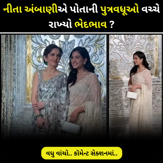 વાયરલ વીડિયોમાં, તમે નીતા અંબાણીને તેમની નાની પુત્રવધૂ રાધિકાનો હાથ પકડીને દિવાળી પાર્ટીમાં આવતા જોઈ શકો છો. સાસુ અને પુત્રવધૂ બંને હસતા હતા. તેઓ તેમની ચમકતી સાડીઓમાં ખૂબ જ સુંદર દેખાતી હતી. બંને હસતા અને પપ્પા માટે પોઝ આપતા જોવા મળ્યા હતા. જોકે, બધાનું ધ્યાન અંબાણી પરિવારની મોટી પુત્રવધૂની ગેરહાજરી તરફ ખેંચાયું હતું, અને આનાથી એવી ચર્ચા શરૂ થઈ કે નીતા તેમની બે પુત્રવધૂઓ વચ્ચે ભેદભાવ કરે છે.નીતા ઘણીવાર રાધિકા સાથે આવા મોટા કાર્યક્રમોમાં જોવા મળે છે. શ્રીમતી અંબાણી તેમની મોટી પુત્રવધૂ શ્લોકા કરતાં તેમની નાની પુત્રવધૂને વધુ લાડ લડાવતી જોવા મળે છે. આનાથી ઘણીવાર ટ્રોલ થાય છે. નીતા અંબાણીના આ વલણથી લોકો હેરાન થવા લાગ્યા છે. એક યુઝરે ટિપ્પણી કરી, “તે હંમેશા શ્લોકાને એકલી કેમ છોડી દે છે?” બીજાએ લખ્યું, “જ્યારે નાની પુત્રવધૂ પાર્ટી કરે છે ત્યારે ગરીબ મોટી પુત્રવધૂ ઘરે રહે છે.” બીજાએ લખ્યું, “નીતા ઘણીવાર બે પુત્રવધૂઓ વચ્ચે ભેદ પાડે છે.” પરંતુ શું તમે જાણો છો કે સોશિયલ મીડિયા ફક્ત આ વિશે જ નહીં, પરંતુ તેમના દેખાવ વિશે પણ ચર્ચામાં છે. ચાહકોના મતે, રાધિકા તેની સુંદરતાથી તેની સાસુને ઢાંકી દે છે. તો, ચાલો અંબાણી પરિવારની મહિલાઓના દેખાવ પર એક નજર કરીએ. જો તમે મનીષ મલ્હોત્રાની દિવાળી પાર્ટીના ચાહક છો, તો તમને ખબર પડશે કે સ્ટાર્સ તેના પોશાક પહેરીને હાજરી આપે છે.