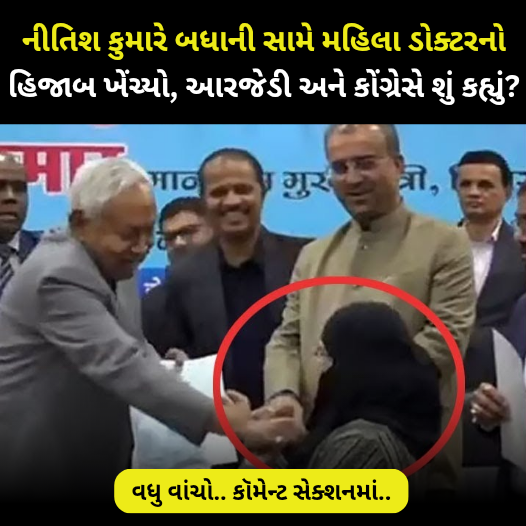 આદિત્ય કુમાર સિંહ, આ વીડિયો સોમવારનો છે. પટનામાં મુખ્યમંત્રી નીતિશ કુમારે જ્યારે આયુષ ડોક્ટરોને નિયુક્તિ પત્ર આપી રહ્યા હતા, તે સમયની ઘટના છે. આ દરમિયાન તેમણે પોતાના હાથથી એક મહિલા આયુષ ડોક્ટર, જેમનું નામ નુસરત પરવીન છે, તેમનો હિજાબ હટાવી દીધો.મુખ્યમંત્રીએ પહેલા નુસરતને નિયુક્તિ પત્ર આપ્યો.