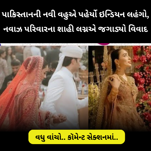 પાકિસ્તાનની નવી વહુ બેગમે પહેર્યો ઇન્ડિયન લહંગો. નવાઝ પરિવારની નવી દુલ્હનની ચર્ચા દરેક જગ્યાએ થઈ રહી છે. ભારતમાંથી ગયેલો લગ્નનો જોડો, જે ડિઝાઇનરોએ કેટરીના કૈફને શણગાર્યા છે અને શિલ્પા શેટ્ટીને તૈયાર કરી છે, એ જ ડિઝાઇનરોએ પોતાનું એક્સક્લૂસિવ કલેક્શન પાકિસ્તાન મોકલ્યું છે. આ વેડિંગ આઉટફિટ્સ જોઈને પાકિસ્તાનમાં લોકોનો ગુસ્સો ફાટી નીકળ્યો છે.પહલગામ આતંકી હુમલા બાદ ભારત અને પાકિસ્તાન વચ્ચે તણાવપૂર્ણ માહોલ છે.
