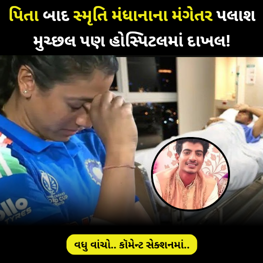 અને જો સ્વાસ્થ્યમાં સુધારો જોવા મળશે તો આજે જ ડિસ્ચાર્જ પણ મળી શકે છે.જોવાય છે કે થોડા દિવસો પહેલા સુધી સ્મૃતિ–પલાશની સંગીત અને મહેંદીની તસવીરો અને વીડિયો સોશિયલ મીડિયામાં ખૂબ જ વાયરલ થઈ રહ્યા હતા. પરંતુ હવે આ અચાનક બનેલા બનાવોને કારણે તેમનું લગ્ન સમારોહ થોડી વાર માટે અટકી ગયું છે.આશા છે કે બંને પરિવારમાં જલ્દીથી બધું સામાન્ય થઈ જાય.