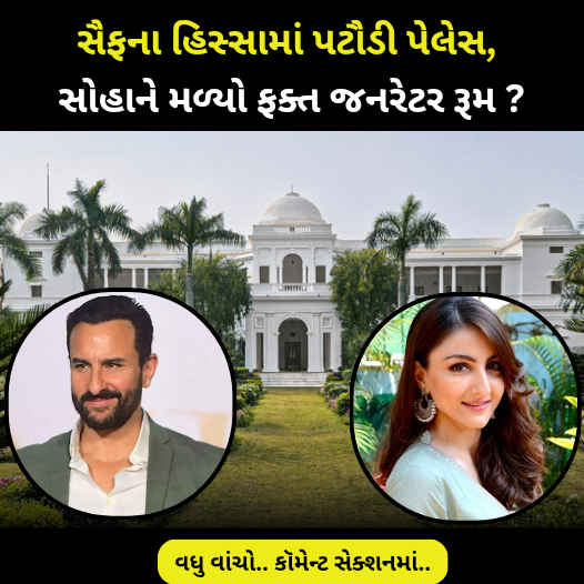 ૮૦૦ કરોડના પટૌદી પેલેસમાં કરીનાની નણંદનો પણ હિસ્સો છે. ૧૫૦ રૂમવાળા આ આલીશાન મહેલમાં જનરેટર રૂમની માલિક છે સોહા. નવાબ સૈફને મળ્યો અનમોલ વારસો, તો સોહાને મળ્યા માત્ર બે રૂમનો હક. પટૌદીની મોટી બેગમ શર્મિલાએ દીકરી સાથે એવું શું કર્યું?પટૌદીના ૧૦મા નવાબ સૈફ અલી ખાન પોતાની ફિલ્મો સાથે જ પોતાના લક્ઝરી લાઇફસ્ટાઇલ માટે પણ હંમેશા ચર્ચામાં રહે છે. સૈફ અબજો રૂપિયાની સંપત્તિના માલિક છે.