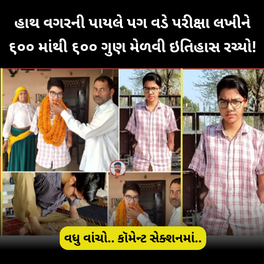 બંને હાથ ન હોવા છતાં, પાયલ યાદવે પગ વડે પરીક્ષા લખીને ઇતિહાસ રચ્યો અને 10મા ધોરણમાં 600 માંથી 600 ગુણ મેળવ્યા.એવું કહેવાય છે કે જો ઇરાદા મજબૂત હોય અને હિંમત ઉડાન ભરે તો કોઈ પણ લક્ષ્ય અશક્ય નથી, આ વાત પાયલ યાદવે સાબિત કરી છે.