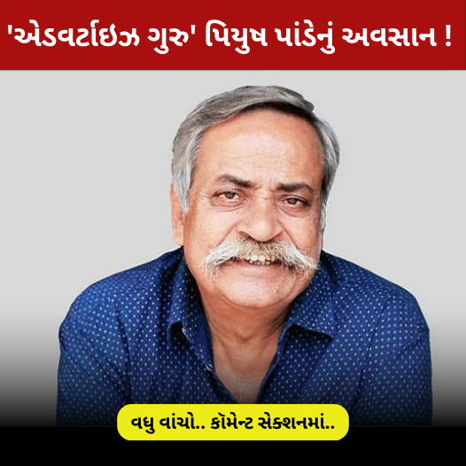 વિજ્ઞાપન જગતના મહારથીનું નિધન વિજ્ઞાપન જગતના મહારથી પિયુષ પાંડેનું 70 વર્ષની વય નિધન થયું વિજ્ઞાપન જગતના એક એવા કસબી જેમના શબ્દો હંમેશા અમર રહેશે. અબકીબાર મોદી સરકાર સૂત્રના તેઓ સર્જક હતા. વડાપ્રધાન નરેન્દ્ર મોદીએ પણ તેમના અવસાન પર શોક વ્યક્ત કર્યો.