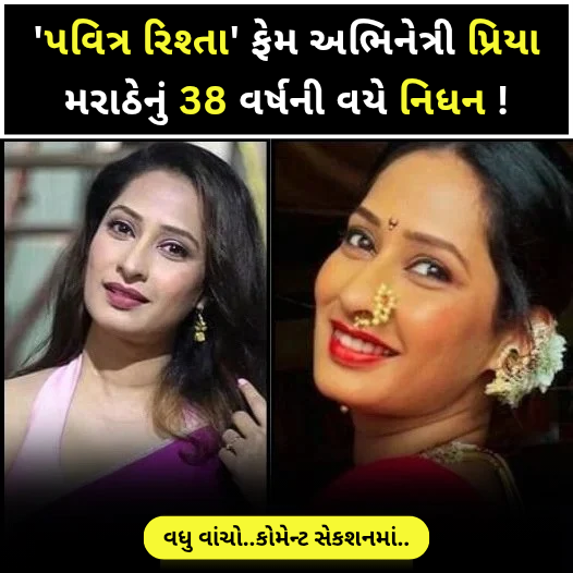 તેના ચાહકોને વિશ્વાસ નથી થઈ રહ્યો કે પ્રિયા હવે આ દુનિયામાં નથી. અભિનેત્રીના પરિવારમાં શોક છે. દરેક વ્યક્તિ ખૂબ રડી રહી છે. તેના મૃત્યુના સમાચારથી ઉદ્યોગ આઘાતમાં છે. ચાહકો પણ શોકમાં છે. અમે તમને તેના મૃત્યુ વિશેની બધી માહિતી વિગતવાર જણાવીએ છીએ. પ્રખ્યાત ટીવી અભિનેત્રી પ્રિયા મરાઠેનું 38 વર્ષની વયે અવસાન થયું છે.