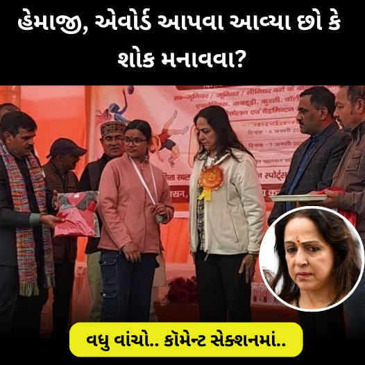 વાત ઇવેન્ટ પ્લાનર્સની છે, જેમણે હેમા માલિનીને ત્યાં ઊભા રાખ્યા. શું તેમને હેમા માલિનીનો ચહેરો દેખાતો ન હતો. કોઈ બીજાને ઊભા રાખી શકતા, જે હસતાં હસતાં હેન્ડશેક કરીને મેડલ પહેરાવે, જેથી સામે મેડલ લેનારને પણ ખુશી થાય કે તેણે કંઈ મોટું કામ કર્યું છે.હેમા માલિનીના એક્સપ્રેશન્સ જોઈને એવું લાગી રહ્યું હતું કે જાણે તેમને મજબૂરીમાં કંઈક કામ કરાવવામાં આવી રહ્યું છે અને તેઓ તે કામ બહુ ખરાબ રીતે કરી રહ્યા છે.