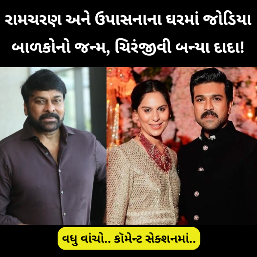 આ વખતે એક નહીં પરંતુ ચિરંજીવીના ઘરના આંગણામાં બે નાનાં મુન્નાં બાળકોની કિલકારીઓ ગુંજવા લાગી છે. હા, રામચરણ અને ઉપાસનાની ખુશીઓ આ સમયે દોગણી થઈ ગઈ છે. 40 વર્ષની ઉંમરે રામચરણ જોડિયા બાળકોના પિતા બન્યા છે. 31 જાન્યુઆરીએ ચિરંજીવીએ પોતાના સોશિયલ મીડિયા પર પોસ્ટ શેર કરીને આ ખુશખબર પોતાના ચાહકો સાથે વહેંચી હતી.