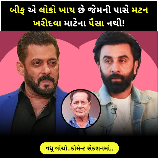 મને લાગે છે કે ચિકન એ માંસાહારી લોકોનો સોયા ખોરાક છે. મટન પાયા બીફ રેડ મીટર રેડ મીટર. હું બીફનો ખૂબ શોખીન છું.સલમાન ખાનના પિતા સલીમ ખાન સાહેબે તેમના સંદેશમાં કહ્યુંતાજેતરના એક ઇન્ટરવ્યુમાં, તેમણે તેમના પરિવારની ખાવાની આદતો વિશે કંઈક એવું કહ્યું, જેના પછી લોકો સલમાન ખાનની પ્રશંસા કરી રહ્યા છે.અને રણબીર કપૂર સાથે દુર્વ્યવહાર થઈ રહ્યો છે.