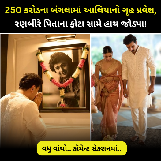 રણબીર અને આલિયા ૩૫ કરોડના એપાર્ટમેન્ટમાંથી ૨૫૦ કરોડના બંગલામાં રહેવા ગયા છે. આલિયાએ કપૂર પરિવારના પૂર્વજોના બંગલાની પહેલી ઝલક આપણને બતાવી. પુત્રી રિયાને ખોળામાં લઈને, રણબીર અને તેની પત્નીએ ગૃહસ્થી સમારોહ કર્યો. નીતુએ તેમના વૈભવી ઘરને ઋષિ કપૂરની સુંદર યાદોથી સજાવ્યું છે.
