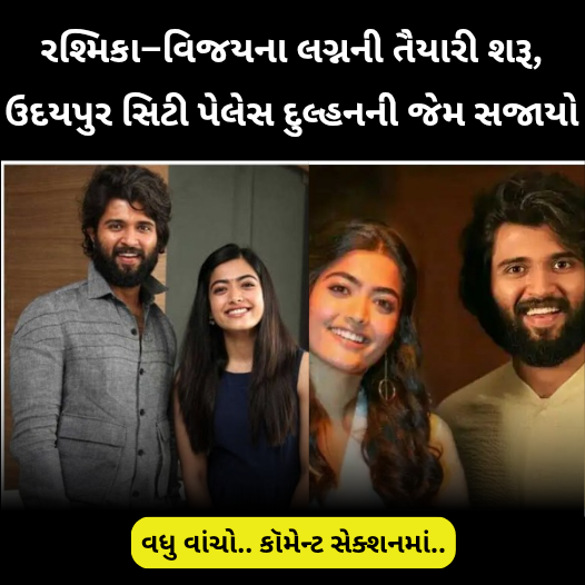 ખબર છે કે સિક્રેટ સગાઈ પછી હવે રશ્મિકા અને વિજય લગ્ન કરવાની તૈયારીમાં છે. તેમના શુભ લગ્ન માટે ઉદયપુરના સિટી પેલેસને શાહી અંદાજમાં ભવ્ય રીતે સજાવવામાં આવી રહ્યો છે. બોલિવૂડથી લઈને સાઉથ ઇન્ડસ્ટ્રીના અનેક મોટા સિતારાઓ આ લગ્નમાં હાજરી આપવાના હોવાથી તૈયારીઓ પણ ખાસ રીતે થઈ રહી છે.