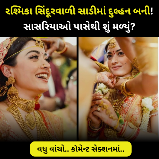 અને સોશિયલ મીડિયા પર તેમના લગ્નના નિખાલસ, સુંદર ફોટા શેર કર્યા. તેથી, કૌટુંબિક બ્રેસલેટ અને સુંદર સિંદૂરી સાડી ઉપરાંત, રશ્મિકાને દેખીતી રીતે એક દયાળુ પુત્રવધૂ તરીકે ઘણી બધી ભવ્ય ભેટો અને ભેટો મળી છે. શુભ લગ્નની સુંદર તસવીરો જોયા પછી, ચાહકો લગ્ન પહેલાના સમારોહના ફોટાઓની આતુરતાથી રાહ જોઈ રહ્યા છે. બધાની નજર દેવેરાકોંડા પરિવારે રશ્મિકાને તેના સાસરિયાના ઘરે કેવી રીતે આવકાર આપ્યો તેના પર પણ છે. અને દરેક વ્યક્તિ આ સુંદર દ્રશ્ય જોવાની રાહ જોઈ રહ્યા છે. દરમિયાન, લાખો ચાહકો રશ્મિકાના લગ્ન પછી શ્રીમતી દેવેરાકોંડા તરીકેની પહેલી ઝલકની આતુરતાથી રાહ જોઈ રહ્યા છે.
