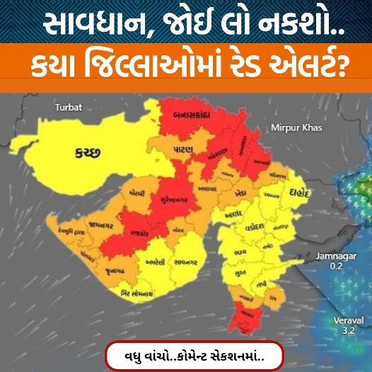 બનાસકાંઠામાં પણ સાર્વત્રિક વરસાદની આગાહી છે અને આવતી કાલ સુધીમાં કચ્છ અને સૌરાષ્ટ્રના બાકીના હિસ્સાઓમાં પણ ખૂબ વધારે વરસાદની સંભાવના છે. જિલ્લા પ્રમાણે આગાહી વિશે વાત કરી લઈએ. બનાસકાંઠા, મહેસાણા, સાબરકાંઠા, અરવલ્લી, સુરેન્દ્રનગર, રાજકોટ અને વલસાડ આટલા જિલ્લાઓમાં આજની તારીખે રેડ અલર્ટ અપાયેલું છે દેવભૂમિ દ્વારકા, જામનગર, મોરબી, પોરબંદર, જૂનાગઢ, પાટણ, અમદાવાદ, ગાંધીનગર, ખેડા, મહીસાગર, ડાંગ, નવસારી આ જિલ્લાઓ એવા છે કે જ્યાં ઓરેન્જ અલર્ટ છે અને બાકીના વિસ્તારોમાં યલ્લો અલર્ટ તો અપાયેલું છે.