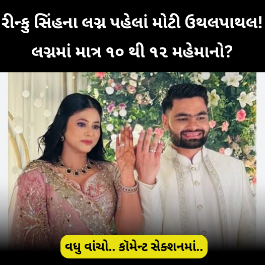 શું ખરેખર અપાર સંપત્તિ હોવા છતાં ખર્ચાથી ઘબરાયા રીન્કુ સિંહ? કેમ લગ્ન પહેલાં સિંહ અને સરોજ પરિવારે લીધો મોટો નિર્ણય?હા, ટીમ ઇન્ડિયાના બેટ્સમેન રીન્કુ સિંહ હવે જલ્દી પોતાની બેચલર લાઈફને અલવિદા કહી લગ્નબંધનમાં બંધાવા જઈ રહ્યા છે. જેમ કે તમે બધા જાણો છો, ક્રિકેટરે પોતાની લેડી લવ અને સમાજવાદી પાર્ટીની સાંસદ પ્રિયા સરોજ સાથે 8 જૂને સગાઈ કરીને પોતાના સંબંધને નવું નામ આપ્યું હતું.