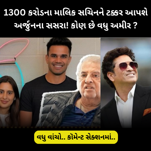 અરબપતિ પરિવારમાં સચિને જોડ્યો દીકરાનો સંબંધ. 1300 કરોડની સંપત્તિના માલિક સચિનને સંધિઓ તરફથી સીધી ટક્કર. શું વૈભવમાં માસ્ટર બ્લાસ્ટર પોતાની આવનારી વહુના માયકા કરતાં પાછળ છે?તૈયારીઓ શરૂ થઈ ગઈ છે. નિમંત્રણ કાર્ડ વહેંચાઈ રહ્યા છે. માસ્ટર બ્લાસ્ટર સચિન તેંડુલકરના ઘરમાં જલ્દી જ દીકરા અર્જુન તેંડુલકરના લગ્નની શહેનાઈ વાગવાની છે. ક્રિકેટના ભગવાન ગણાતા સચિનના પરિવારમાં ટૂંક સમયમાં વધારો થવાનો છે.