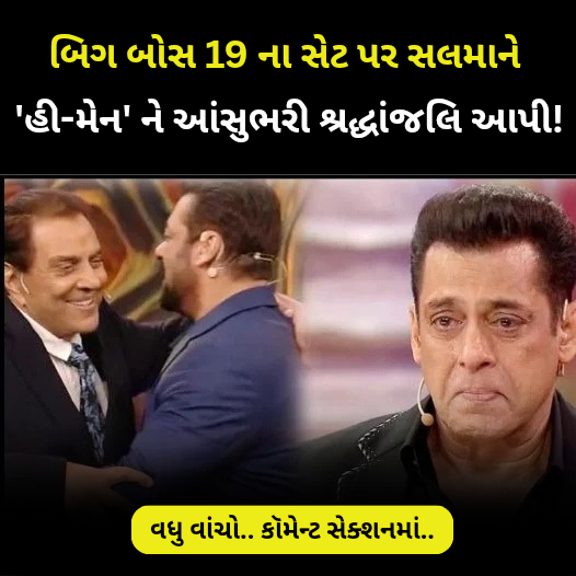 હંમેશની જેમ, તેણે આ વર્ષે ગ્રાન્ડ ફિનાલેનું ઉત્સાહપૂર્વક આયોજન કર્યું. જોકે, ધર્મેન્દ્રની યાદમાં સલમાન અને ધર્મેન્દ્રના સુંદર, યાદગાર ફોટા દર્શાવતો એક સુંદર વીડિયો રજૂ કરવામાં આવ્યો ત્યારે તેના ઘા ફરી વળ્યા. એક ફોટામાં, સલમાન સલમાનને ભેટી પડેલો જોવા મળે છે, જ્યારે બીજા ફોટામાં, ધર્મેન્દ્ર ખુશીથી સલમાન તરફ હસતો જોવા મળે છે. આ જોઈને, સલમાન ખાન બિગ બોસ ૧૯ ના સ્ટેજ પર રડી પડ્યો અને રડી પડ્યો.