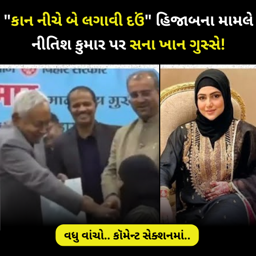 બિહારના મુખ્યમંત્રી નીતિશ કુમાર સાથે જોડાયેલો હિજાબનો મામલો હવે વધુ તૂલ પકડી રહ્યો છે. નીતિશ કુમારે તાજેતરમાં એક સમારંભ દરમિયાન એવી હરકત કરી હતી કે જેને જોઈ લોકો ગુસ્સેમાં આવી ગયા. એક કાર્યક્રમમાં મુસ્લિમ મહિલા ડોક્ટરનો હિજાબ ખેંચવાનો વિડિયો સોશિયલ મીડિયા પર વાયરલ થતાં જ ફિલ્મી હસ્તીઓએ પણ મુખ્યમંત્રીની કડક ટીકા કરી છે. આ ઘટના રાજકીય ગલિયારાઓમાંથી નીકળીને હવે બોલિવૂડ સુધી પહોંચી ગઈ છે. જાયરા વસીમ બાદ હવે એક્ટ્રેસ સના ખાન અને રાખી સાવંતે પણ આ મુદ્દે પોતાનો રોષ વ્યક્ત કર્યો છે.