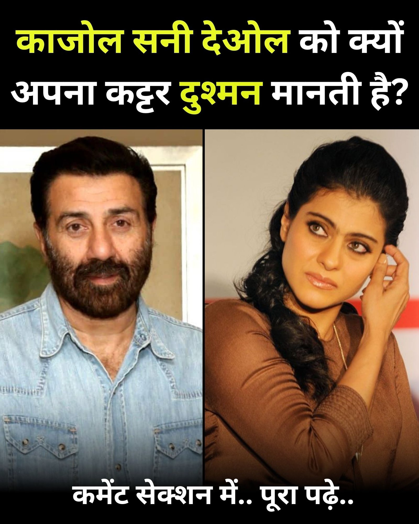 और अब हम सबसे पहले नाम सनी देओल का आता है यह आपको इस बात की जानकारी देना चाहेंगी काजोल जहां बॉलीवुड की जानी-मानी अभिनेत्री हैं तो वहीं दूसरी ओर सनी पाजी भी किसी से कम नहीं है लेकिन यहां आपको इस बात की जानकारी देना चाहेंगे कि सनी देओल के साथ काजोल का छत्तीस का आंकड़ा है अब काजोल की दुश्मनों की लिस्ट में सबसे पहले नाम सनी देओल काले तो इस बात में कोई गुरेज नहीं है और सनी देओल काजोल के कट्टर दुश्मन माने जाते हैं काजोल ने इस समय पर सनी देओल के साथ फिल्मों में काम करने से मना भी कर दिया था जिसको लेकर काफी ज्यादा बवाल भी हुआ पूरे मामले की तरफ से डालें तो एक बार निर्देशक अनिल शर्मा ने इंटरव्यू के दौरान खुद इस बारे में खुलासा किया था कि काजोल ने उनकी फिल्म गदर में काम करने से मना कर दिया था अली शर्मा का इस बारे में कहना था कि कुछ लोगों को लगता था कि हम लाइक नहीं उनके साथ काम करने के लिए उन्हें लगता था कि हम छोटे लोग हैं और वह बड़े हैं कुछ को लगता था कि वह इतनी मॉडर्न फिर नहीं है और कुछ को इसकी कहानी पीरियड लेकिन लेकिन शायद भगवान् भी यह चाहते थे कि फिल्म समीक्षक उसी में हालत इस कदर का हेयर ऑइल ठुकराकर काजोल को बहुत ज्यादा पछतावा भी वह तो ऐसे व्यक्ति समझ सकते हैं अनिल शर्मा के निर्देशन में बनी फिल्म ग़दर एक प्रेम कथा में बतौर एक्ट्रेस सबसे पहले काजोल को कास्ट करने की बात कही गई थी