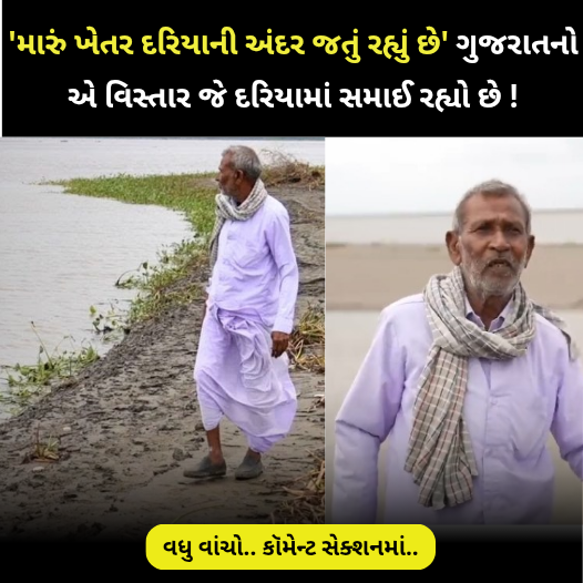 આ દરિયો ગુજરાતના ખંભાતનો છે. દરિયાનું વધારે પડતું પાણી ખંભાત બાજુ ધસી આવ્યું છે તેથી દરિયાને કિનાર કિનારે ભેખડો પડતી જાય છે. વધારે પડતું પાણી ખંભાત તરફ આવી ગયું છે, અમારી જમીન ધસી રહી છે, મારું તો ખેતર જ ચાલ્યું ગયું છે…” – ખંભાતના લોકો આવું કહી રહ્યા છે.