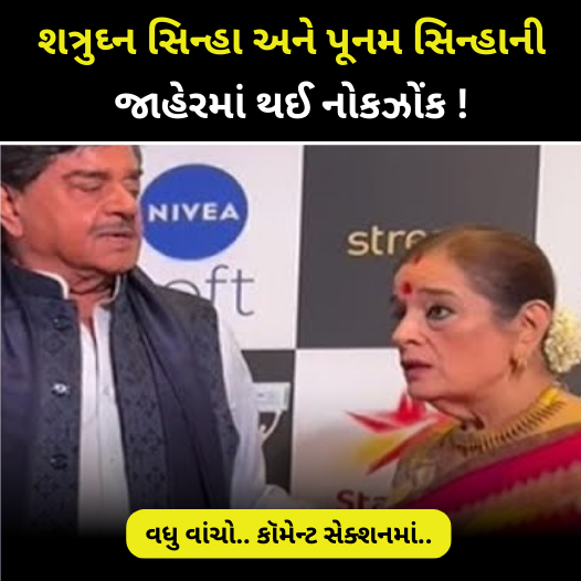શત્રુઘ્ન સિન્હાએ પત્નીને કરાવી ખામોશી. સોનાક્ષી સિન્હાના મમ્મી પપ્પા વચ્ચે થયો ઝગડો. દબંગ ગર્લના પપ્પાનો ગુસ્સાભર્યો અંદાજ જોવા મળ્યો. પત્ની પૂનમની કઈ હરકત પર ભડક્યા એક્ટર. કેમેરા સામે મિયા-બીવીની થઈ નોકઝોંક. ના ના, આ બધા દાવા અમે નહીં પરંતુ સોશિયલ મીડિયા પર ફેન્સ આ વીડિયો જોઈને કરી રહ્યા છે