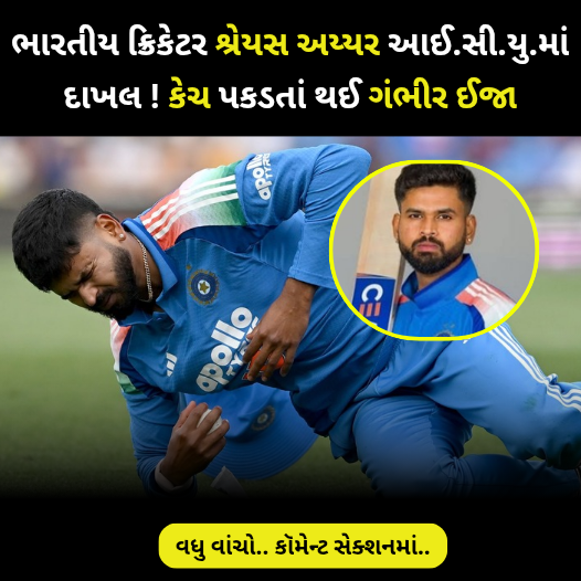 ભારતીય ક્રિકેટર શ્રેયસ અય્યર આઈ.સી.યુ.માં દાખલ ! કેચ પકડતાં થઈ ગંભીર ઈજા