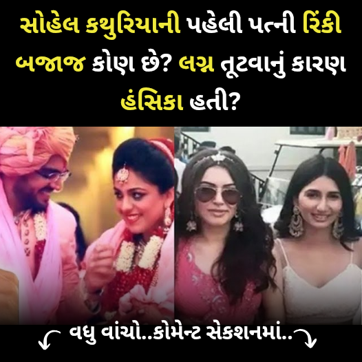 તે મીડિયાથી દૂર રહે છે અને લો-પ્રોફાઇલ જીવન [સંગીત] જીવવાનું પસંદ કરે છે. સોહેલ અને રિંકીના લગ્ન થોડા વર્ષો સુધી મૈત્રીપૂર્ણ રીતે સમાપ્ત થયા, અને નોંધપાત્ર વાત એ છે કે તેઓએ ક્યારેય જાહેરમાં એકબીજા પર આરોપ લગાવ્યા નહીં, અને તેઓ કોઈપણ વિવાદ વિના [સંગીત] અલગ થઈ ગયા. હવે જ્યારે હંસિકા અને સોહેલના છૂટાછેડાના સમાચાર સામે આવ્યા છે, ત્યારે સોહેલના પહેલા લગ્ન ફરી એકવાર ચર્ચામાં આવ્યા છે. જોકે, રિંકી બજાજે હજુ સુધી આ બાબતે કોઈ ટિપ્પણી કરી નથી, હંમેશની જેમ ગૌરવપૂર્ણ મૌન જાળવી રાખ્યું છે.