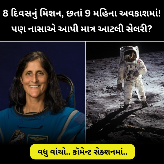 તેનાથી અનેકગણી વધુ રકમ તો ભારતમાં એક જજના ઘરે બળેલી હાલતમાં મળી હતી. સોશિયલ મીડિયા પર 15-20 વર્ષના બાળકો ઊટપટાંગ અને અશ્લીલ કન્ટેન્ટ બનાવીને પણ કદાચ સુનિતા વિલિયમ્સ અને બુચ વિલમોર કરતાં વધુ કમાણી કરી રહ્યા છે.9 મહિના સુધી સુનિતા વિલિયમ્સે જીવ જોખમમાં મૂકીને, એક-બે કપડાંમાં જ અંતરિક્ષમાં કામ કર્યું. જ્યારે પૃથ્વી પર યુવતીઓ રીલ્સમાં ટૂંકા કપડાં પહેરીને નાચે છે અને સુનિતા વિલિયમ્સ કરતાં વધુ પૈસા કમાઈ લે છે. ત્યારે પ્રશ્ન એ છે કે સુનિતા વિલિયમ્સ અને બુચ વિલમોર જેવા અંતરિક્ષયાત્રીઓને કેટલી સેલરી મળે છે અને ઓવરટાઈમના કેટલા પૈસા મળે છે.