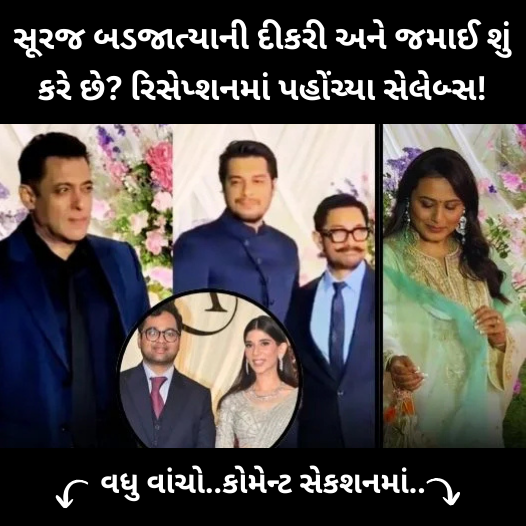 હમ આપકે હૈ કૌન? મૈંને પ્યાર કિયા અને હમ સાથ સાથ હૈ જેવી બ્લોકબસ્ટર ફેમિલી ફિલ્મોના સર્જક સૂરજ બજાતિયાની પુત્રી ઈશા બજાતિયાના લગ્નના રિસેપ્શનમાં બોલિવૂડ સ્ટાર્સ ઉમટી પડ્યા હતા. હા, સૂરજ બજાતિયાના ખાસ મિત્ર સલમાન ખાન પણ રિસેપ્શનમાં જોવા મળ્યા હતા. દરેકના મનમાં એક પ્રશ્ન છે: સૂરજ બજાતિયાની પુત્રી અને જમાઈ ખરેખર શું કરે છે? તો ચાલો આજે અમે તમને આ વીડિયોમાં જણાવીએ.