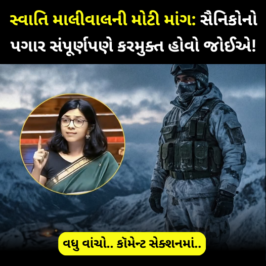 તાજેતરમાં Swati Maliwalએ એક એવી માંગ ઉઠાવી છે જેને લઈને દેશભરમાં નવી ચર્ચા શરૂ થઈ ગઈ છે. તેમણે જોરદાર રીતે વકાલત કરી છે કે આપણા સૈનિકોની સેલેરી સંપૂર્ણપણે ટેક્સ ફ્રી કરવી જોઈએ. તેમનો તર્ક છે કે જે જવાનો દુર્ગમ પહાડો અને જોખમી પરિસ્થિતિઓમાં રહીને મહીનાઓ સુધી પોતાના પરિવારથી દૂર રહે છે, તેમના ત્યાગનો સન્માન કરવા માટે આ એક મોટું અને જરૂરી પગલું બની શકે.આપણી સુખ સુવિધાઓ માટે પોતાનું બધું સમર્પિત કરી