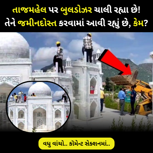 આ તસવીરો જોઈને કદાચ તમે ચોંકી ગયા હશો,અથવા આ સમાચાર સાંભળી તમે પણ હેરાન થઈ ગયા હશો —કે તાજમહલ પર બુલડોઝર એક્શન ચાલી રહ્યું છે!જ્યાં રવિવારે મજૂરો છીણી-હથોડી લઈને તાજમહલ પર ચઢી ગયા.એક એક પથ્થર તોડવા લાગ્યા.પથ્થરો દૂર કરવા માટે બુલડોઝર લાવવામાં આવ્યા.તાજમહલના દરેક પથ્થરને તોડી પાડવામાં આવી રહ્યું છે.
